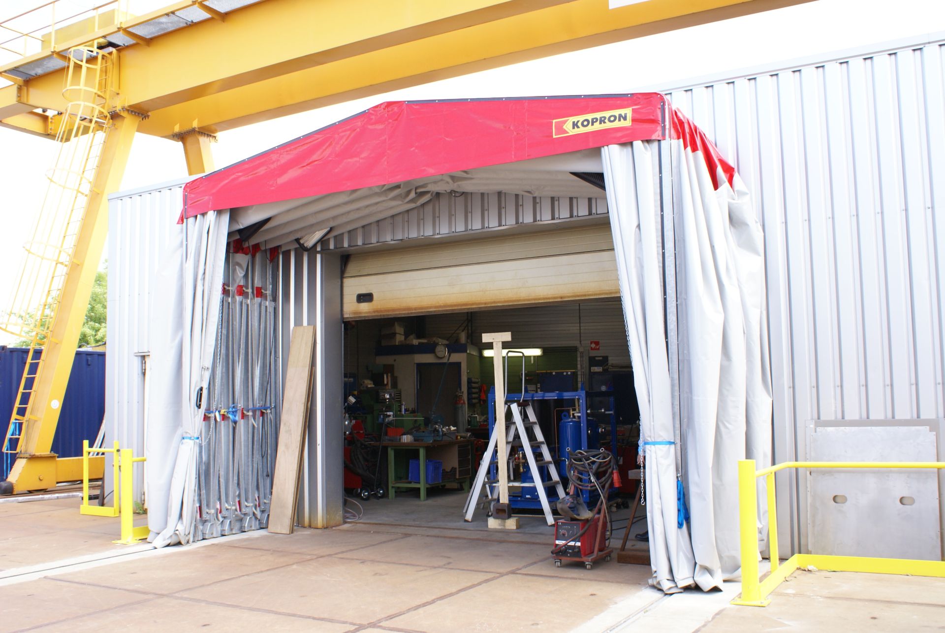 Veelzijdige harmonicatunnels van VLP zijn uitstekend toepasbaar als werktent, garage of tochtsluis.