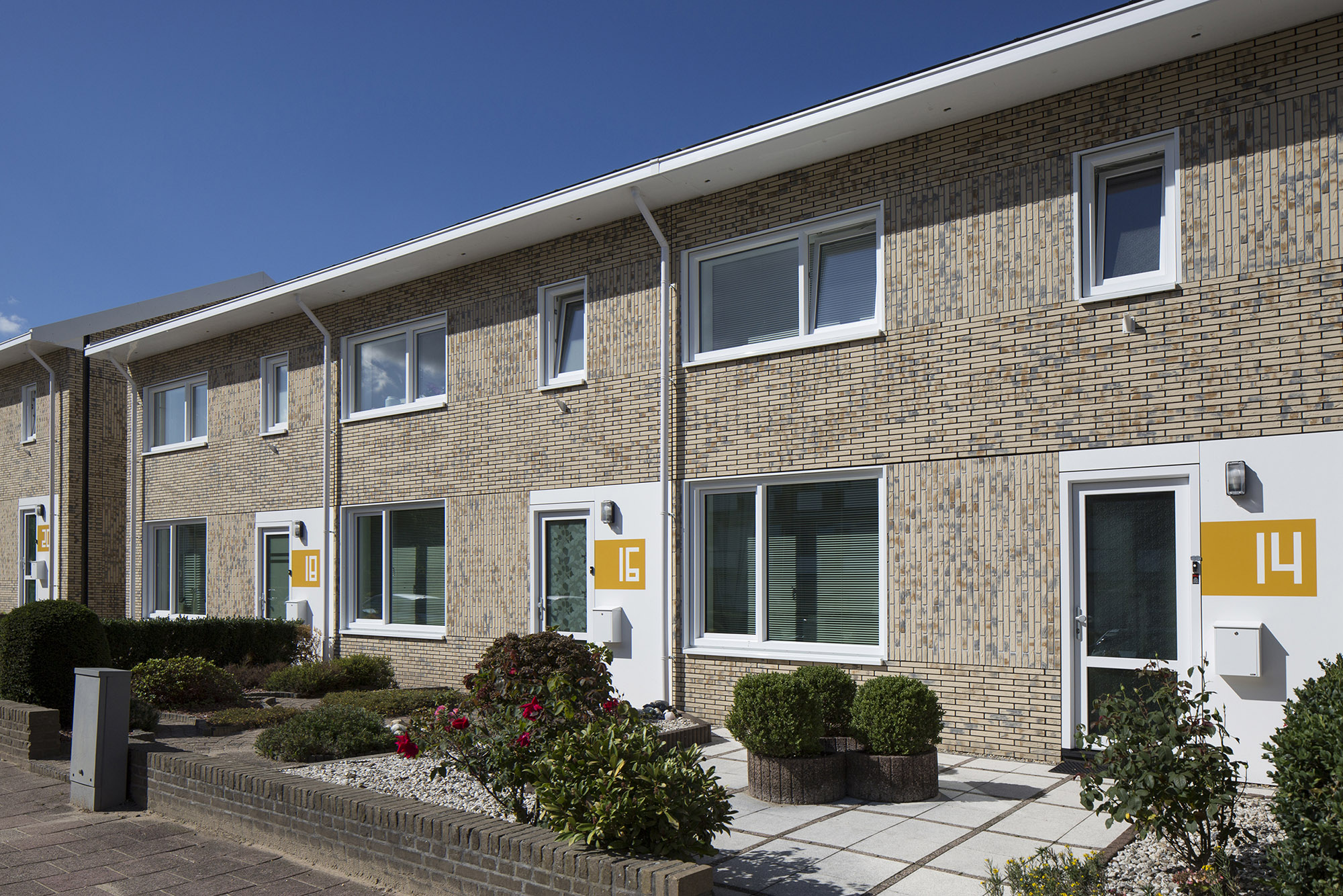 Bij de optimalisering van het concept stelde BAM en Gevelelementen Noord-Holland vast dat het handmatige aanbrengen van die steenstrips te bewerkelijk en te kostbaar is. Kerkhof: ‘Er zijn meer dan 15 man nodig om de elementen te beplakken met strips. We zijn toen gaan nadenken over manieren om ook dat deel van het proces te industrialiseren. Dat betekent dat je een ondergrond en een lijm nodig hebt die dat samen mogelijk maken, op een manier die past in het fabrieksproces van Gevelelementen Noord-Holland. Dat proces verloopt via een lopende band waarbij elke bewerking 20 minuten mag kosten. Met de Powerpanel H2O van fermacell blijkt het mogelijk om de steenstrips in die tijdspanne te verlijmen . Gevelelementen Noord-Holland kan de gevels nu in hun geheel gerobotiseerd produceren en wij gebruiken ze in diverse projecten met NOM-keur, zoals recent in Soest, maar ook in onder meer Emmen, Heerhugowaard, Helden, Landsmeer en Woerden.’