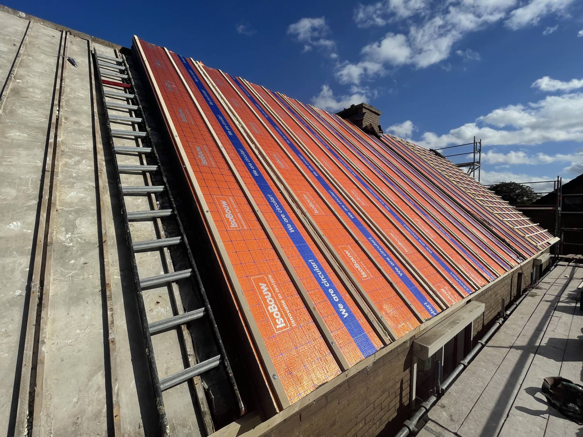NOM-ready / passief renoveren gaat eenvoudig met de circulaire SlimFix Reno renovatieplaten van IsoBouw. De dampopen isolatieplaten zijn leverbaar met een Rc-waarde t/m 10.0 en creëren een doorlopende isolatieschil die water- en luchtdicht kan worden afgedicht. De ingelijmde tengellatten maken de elementen constructief zeer sterk waardoor o.a. overstekken eenvoudig kunnen worden gerealiseerd.