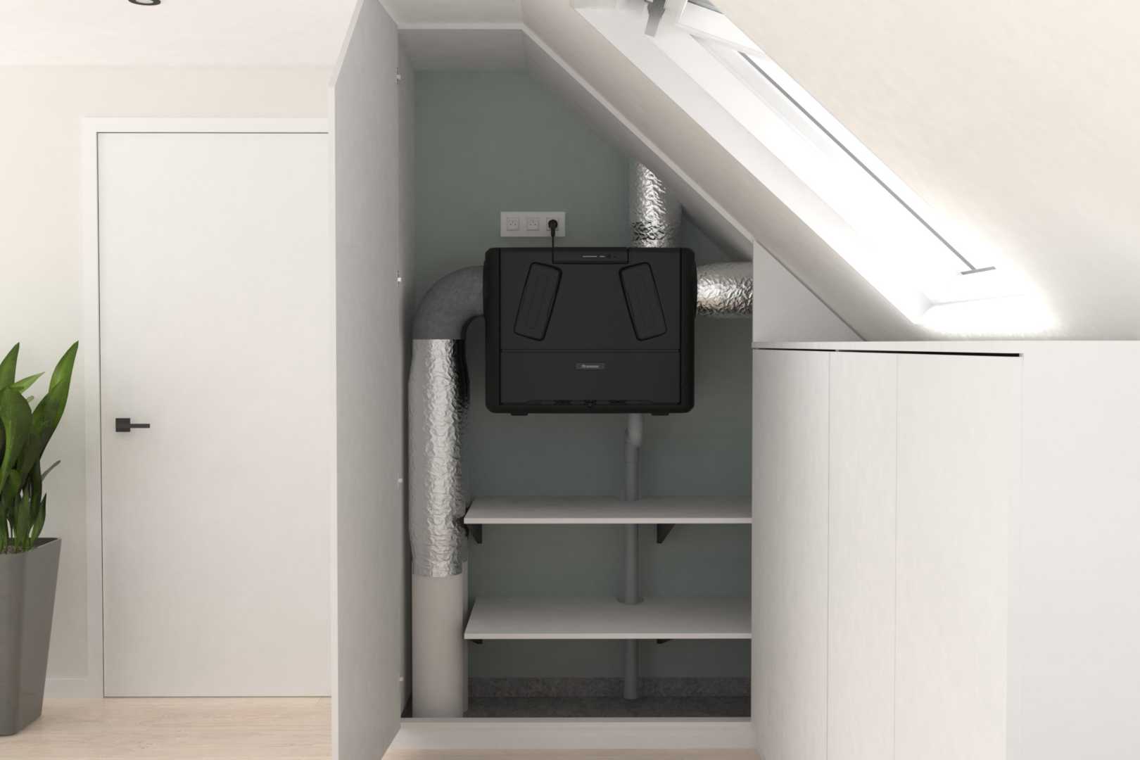 Een kleine technische ruimte hoeft dankzij de nieuwe Flux Wall Compact van Renson niet langer een obstakel te zijn voor een vraaggestuurd WTW-ventilatiesysteem. De Compact, het kleine broertje van de Flux Wall, kan debieten tot 350m³/h aan. Ga voor een slimme én compacte ventilatie-unit, geïnstalleerd in recordtempo en met een lage energiefactuur voor je eindklant.