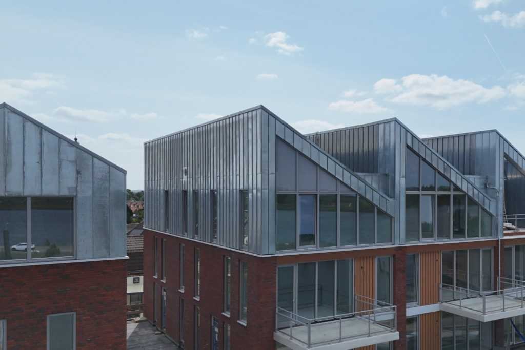 Aan de Dorpsstraat in Streefkerk, hoog op de dijk met uitzicht over de rivier de Lek en de jachthaven Liesveld, verrijst een bijzonder woonproject: Nieuwe Haven. Het plan omvat 26 appartementen en 14 woningen, verdeeld over zes woonblokken met elk een eigen karakter. Wat deze ontwikkeling extra bijzonder maakt, is het gebruik van 3500 m² walsblank zink in het felssysteem van NedZink NATUREL — een materiaalkeuze die het project letterlijk en figuurlijk glans geeft.